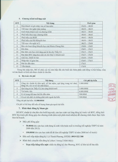 Sau buổi họp, kế hoạch được thông qua và Ban Giám hiệu trường ra thông báo gởi đến cựu học sinh