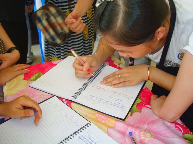 Cô Tám ghi lại cảm nghĩ khi tham gia buổi họp mặt
