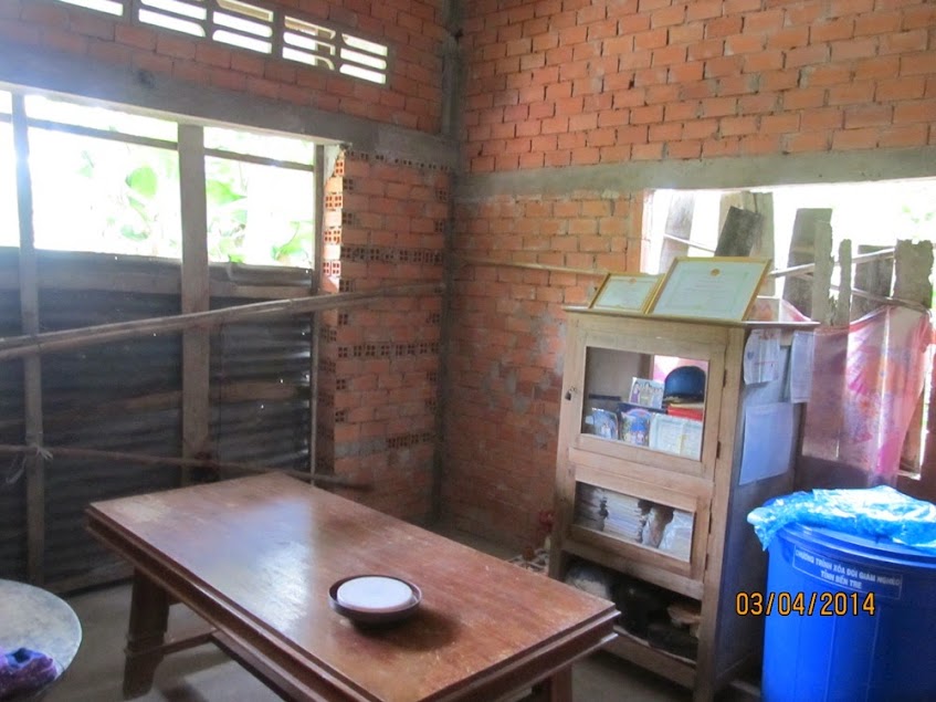 Mỗi cây mỗi hoa, mỗi nhà mỗi cảnh. Tôi không khỏi ngập ngùi khi đến với gia đình em Phương Thắm. Một căn nhà vẫn chưa được gọi là hoàn chỉnh, bởi nhà chưa được làm cửa. Khi đi xa hơn, sâu hơn vào trong nhà thì hỡi ơi, căn sau mái lá đã mục nát. Một căn nhà chỉ vỏn vẹn trong 300 mét đất mà gia đình sẵn có. Và gia đình chỉ có đủ 300 mét đất để làm chỗ ở tạm bợ qua ngày. Ngoài ra cũng chẵng có thêm đất để trồng trọt hoặc chăng nuôi gì thêm.